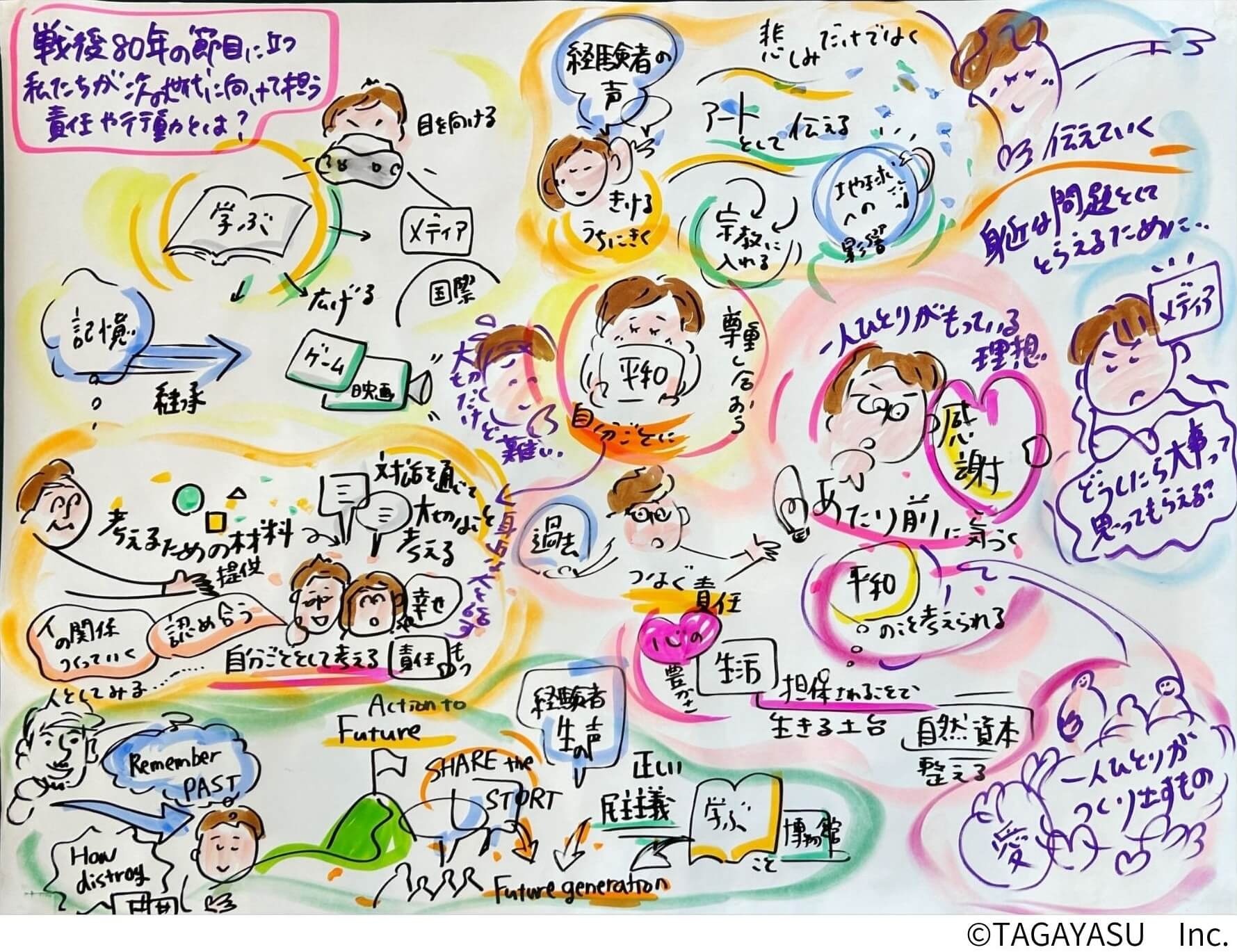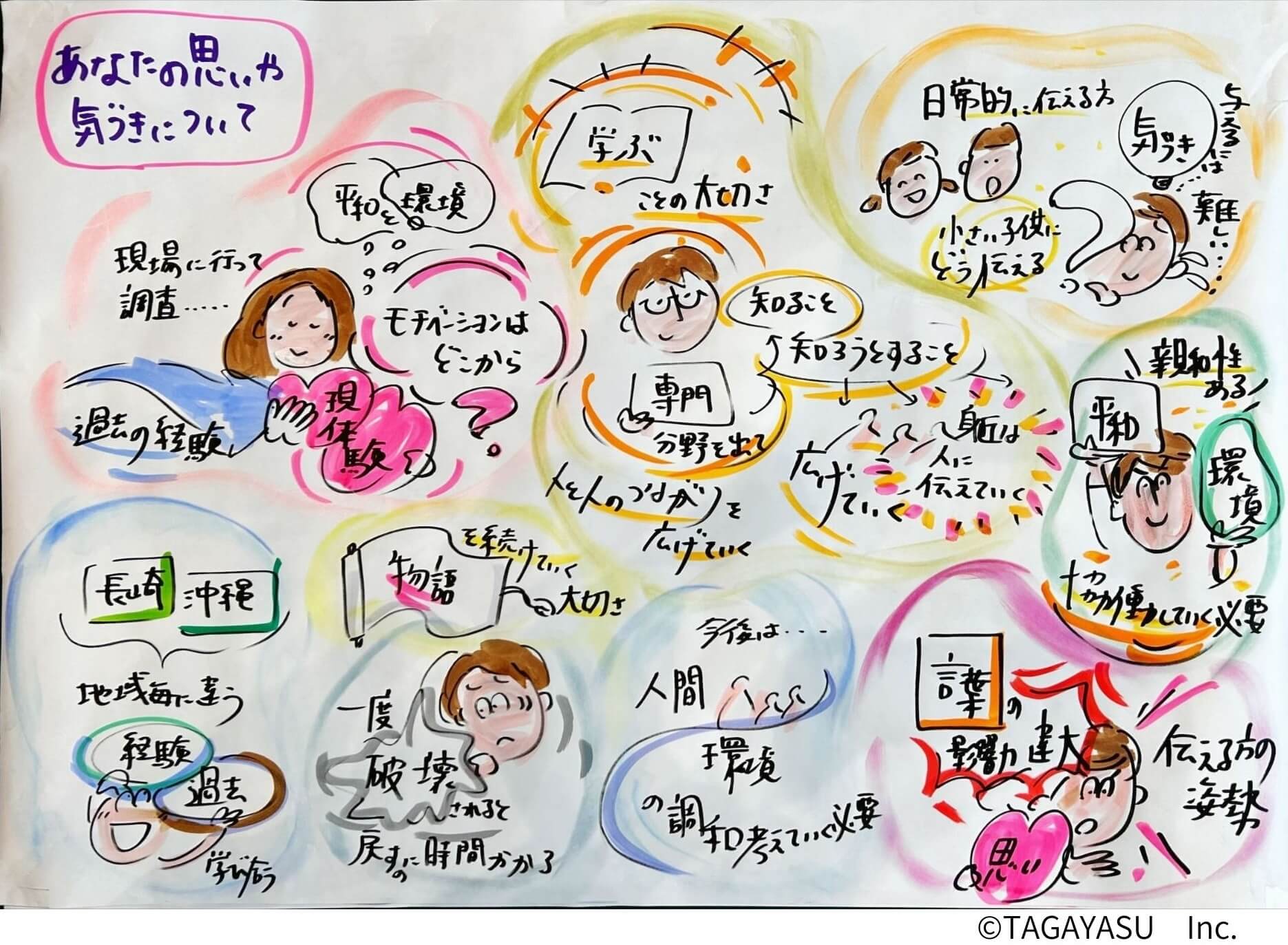 さらに、対話会全体を通してグラフィックレコーディング(株式会社たがやす)を行い、参加者に分かりやすいまとめの一助となりました。