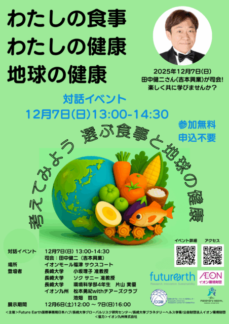 主催:Future Earth国際事務局日本ハブ、長崎大学グローバルリスク研究センター、長崎大学プラネタリーヘルス学環、公益財団法人イオン環境財団