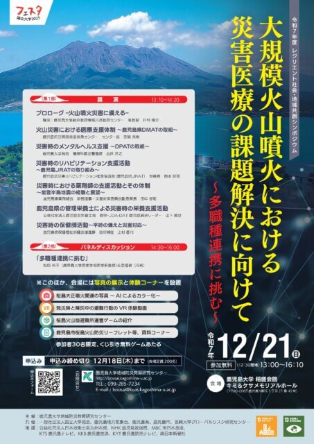 共 催: 一般社団法人国立大学協会、鹿児島地方気象台、鹿児島県、鹿児島市、長崎大学グローバルリスク研究センター