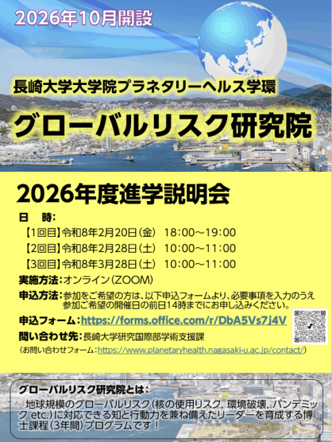 グローバルリスク研究院HP:https://www.planetaryhealth.nagasaki-u.ac.jp/gr-program/